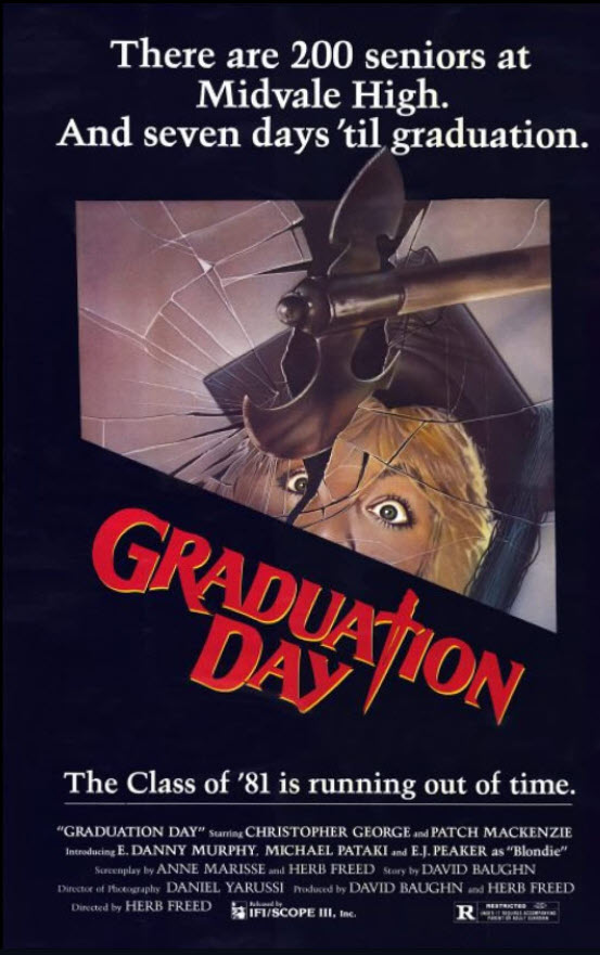 Graduation Day is a pretty good slasher film that keeps you guessing who the killer could be and has some pretty inventive death scenes. Some early performances from future stars may pick the interest of viewers and 80s horror fans will definitely want to see this, even if a certain victim’s decapitated head and the school security guard are more laughable.