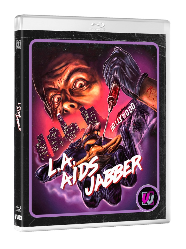 Having recently launched, Wild Eye Releasing’s sister label Visual Vengeance has unearthed another SOV (shot on video) gem from the 1980s and 1990s in the form of L.A. Aids Jabber, originally released in 1994.