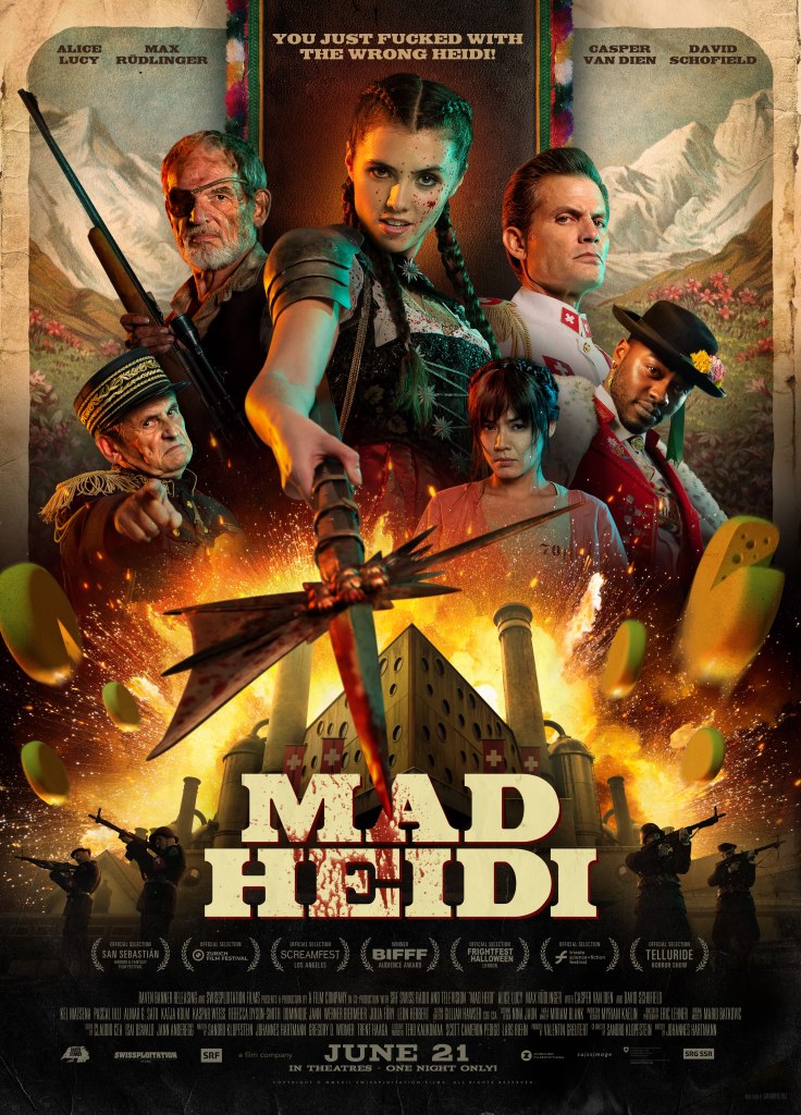 This Swissploitation film was first announced in 2019 with a crowdfunding plan and it looked to have worked! Not since Kung Fury and many others have a fun made its intentions clear with such a wild and insane adaptation of the classic Johanna Spyri tale. With a ruler heavily into cheese and having his own “Swiss Reich” if you will, this is a madcap action and exploitation film that has it all and if you are a lover of grindhouse and Troma films, then get ready because this is right up there!